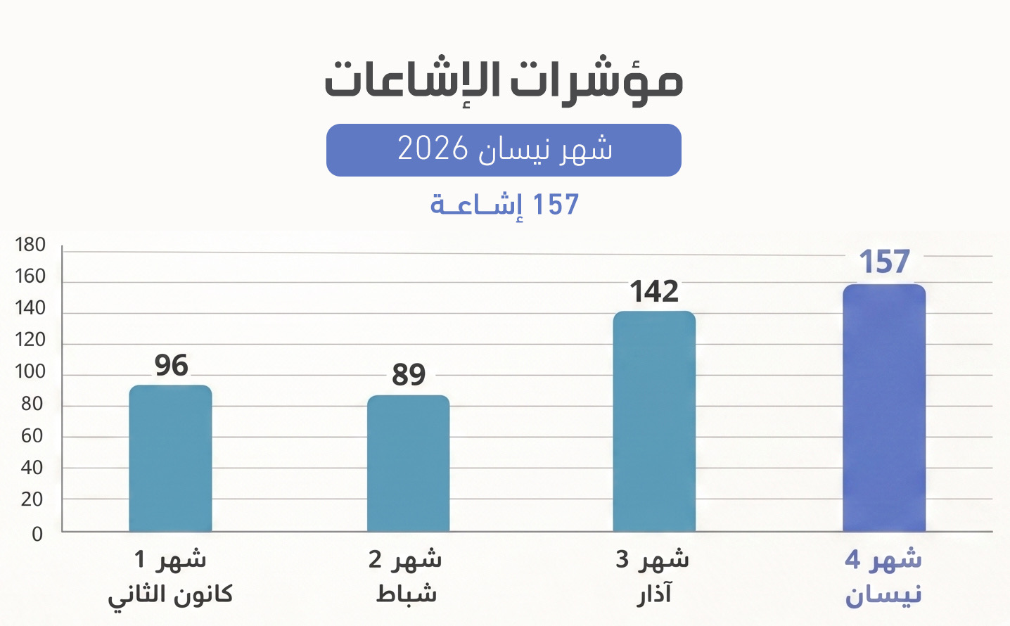 وتبين لمرصد مصداقية الإعلام الأردني (أكيد) أنَّ شهر نيسان شهد ارتفاعًا غير مسبوق في عدد الإشاعات التي استهدفت الأردن، حيث سجَّل 157 إشاعة ليصل إلى أعلى مستوى منذ بداية العام الجاري 2026 بزيادة بلغت نسبتها نحو 11 في المئة مقارنة بشهر آذار الماضي.