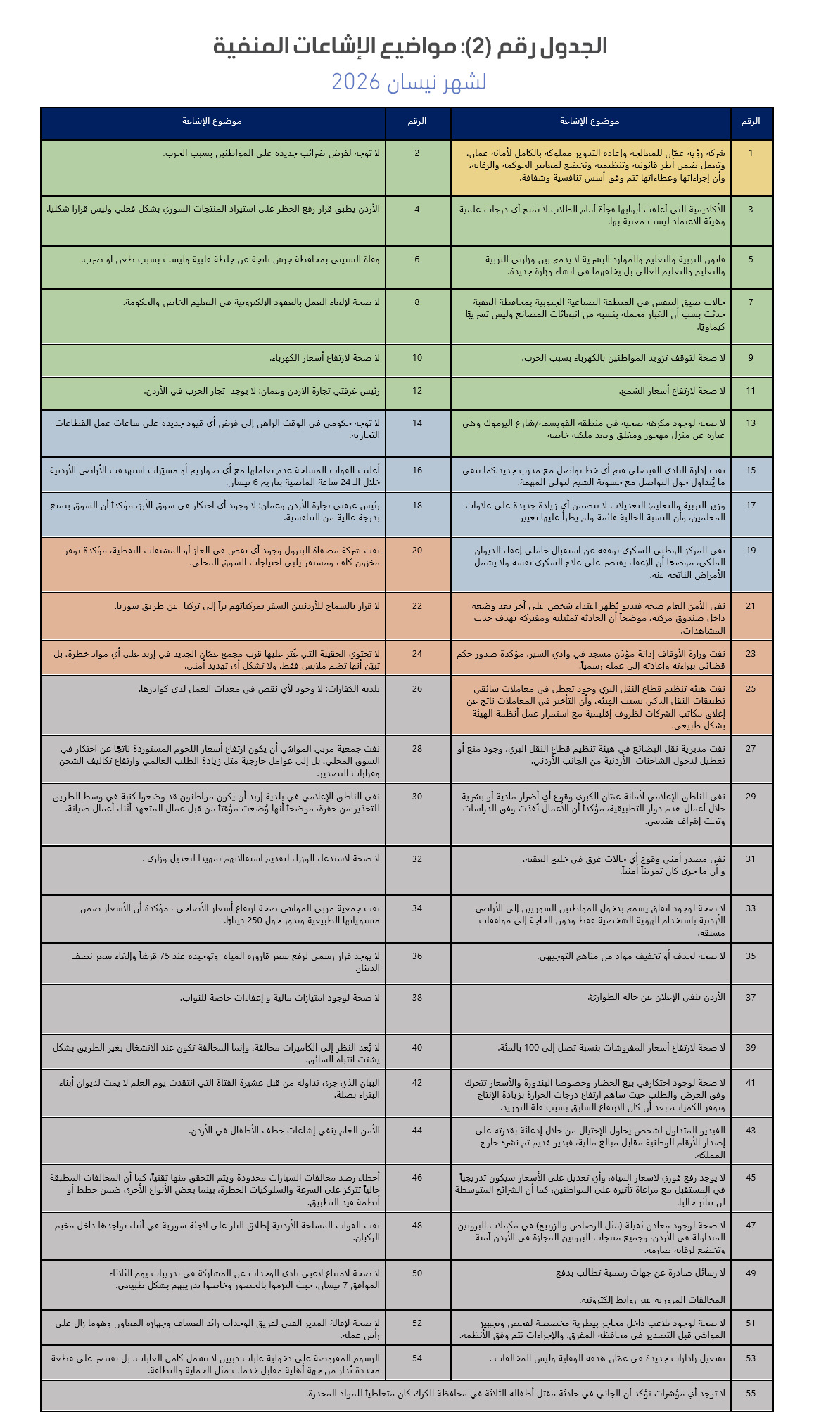 روابط الإشاعات المنفية لشهر نيسان 2026:
