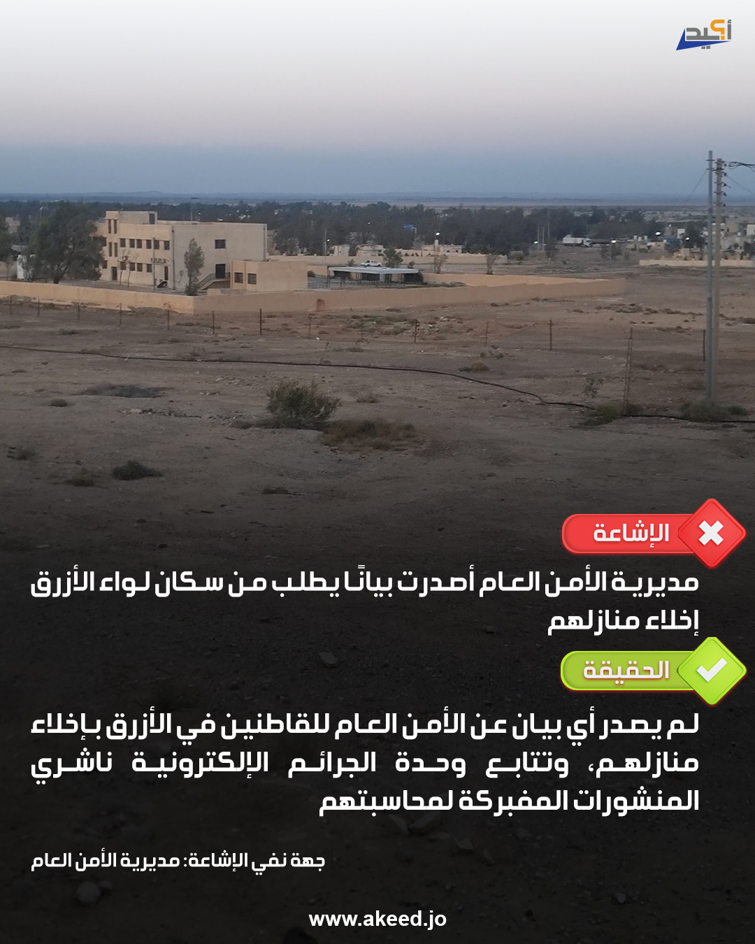 إشاعة الأمن العام يطلب من سكان الأزرق إخلاء منازلهم