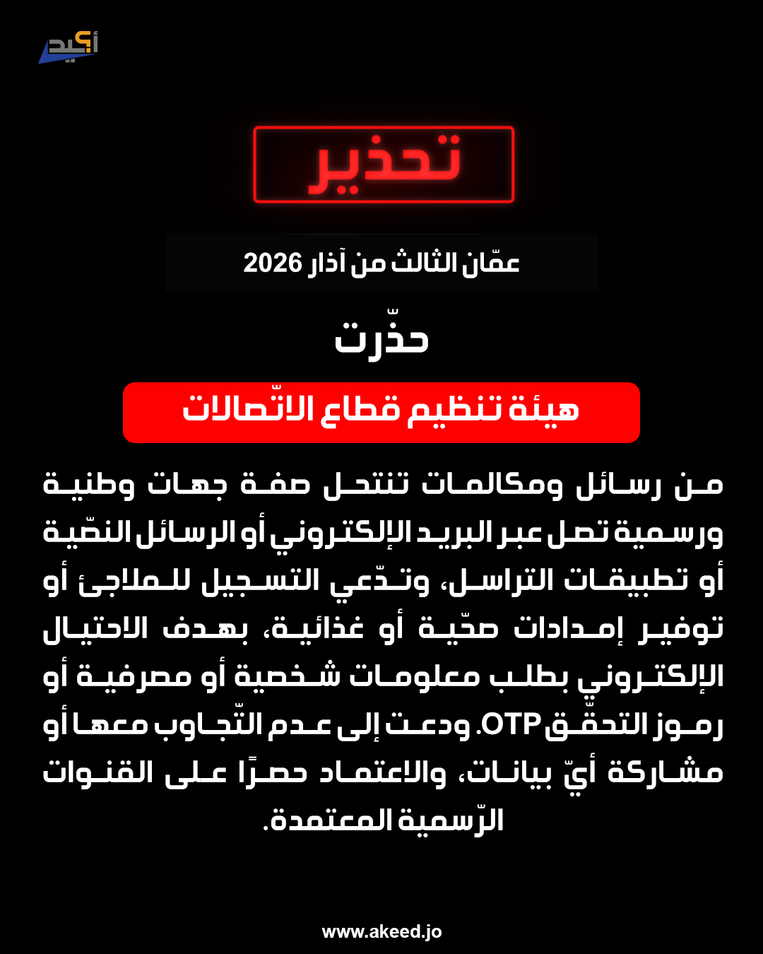 تحذير من هيئة تنظيم قطاع الاتصالات 5 آذار